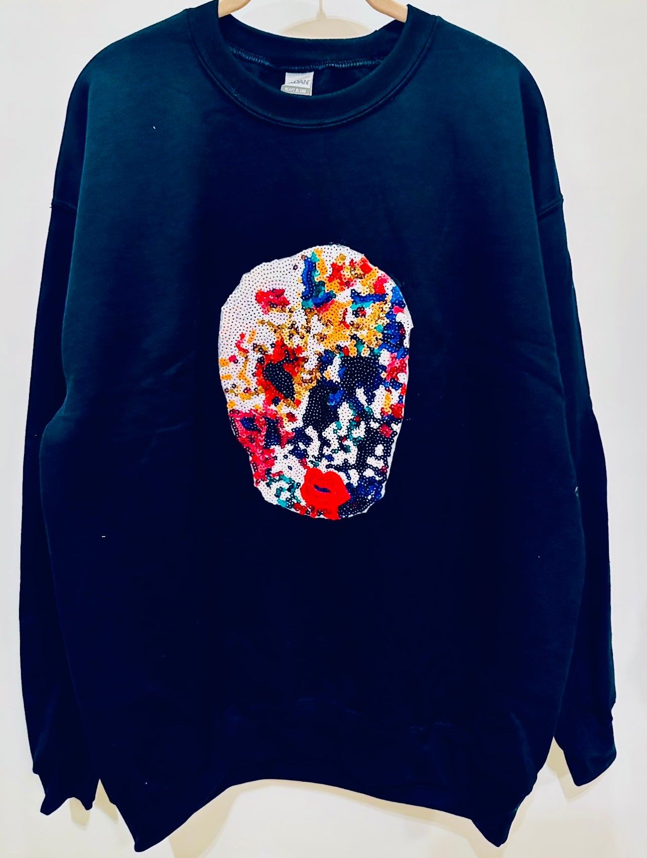 Unique Original One of a Kind Hand Appliquéd Multicolor SKELETON Sweatshirt. Appliquéd on Black Gildan Sweatshirt. Large
